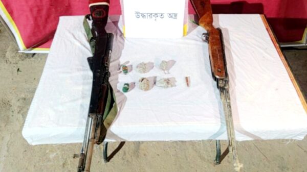 হাজীগঞ্জের বলাখাল থেকে যৌথ বাহিনী কর্তৃক অবৈধ অস্ত্র উদ্ধার